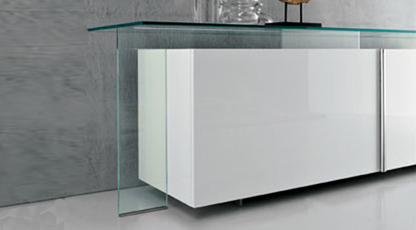 high glossy painted black or white, glass top and side